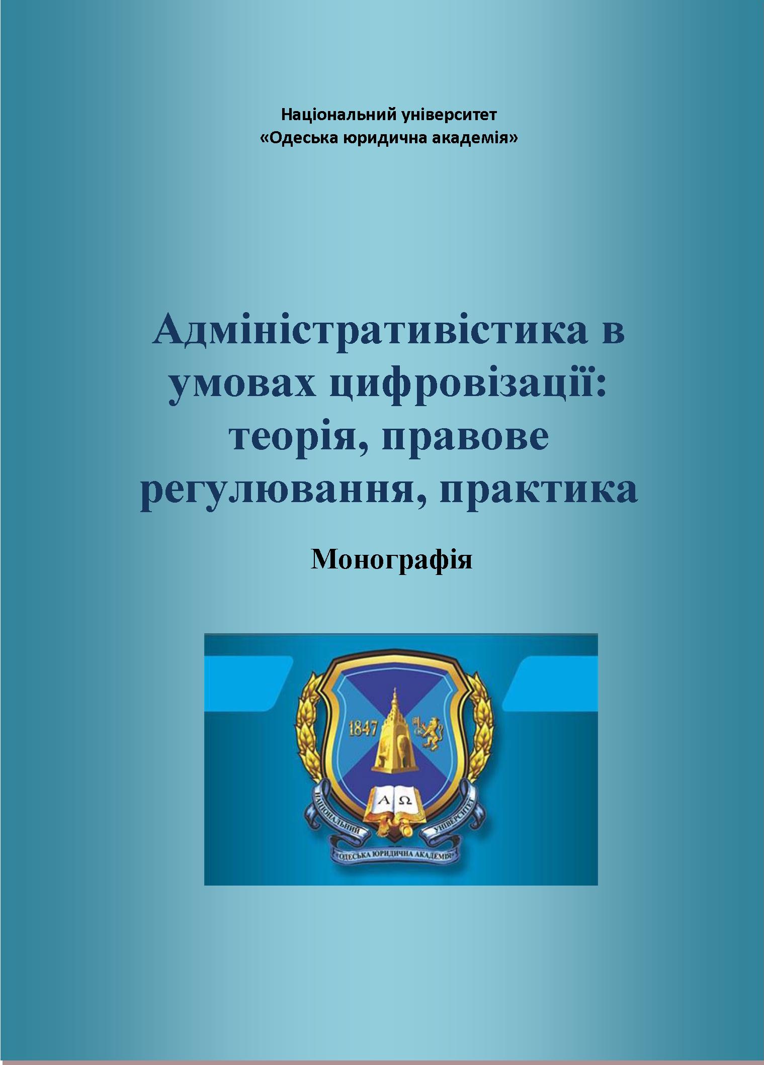 Адміністративістика в умовах цифровізації: теорія, правове регулювання, практика : монографія / авт. Колектив : С.В.Ківалов, Л.Р.Біла-Тіунова, Т.А.Латковська та ін. – Одеса : Видавничий дім «Гельветика», 2022. – 800 с.