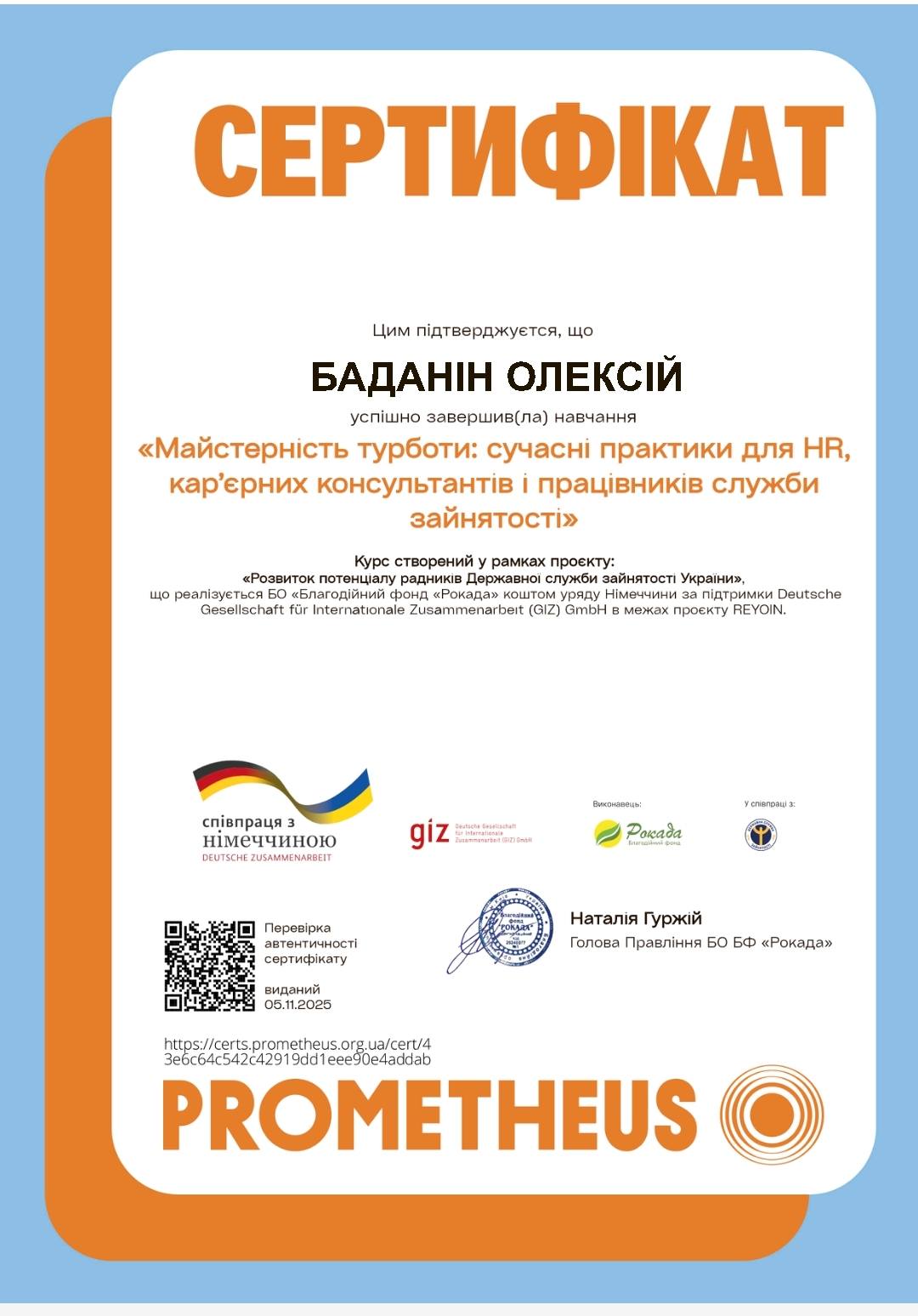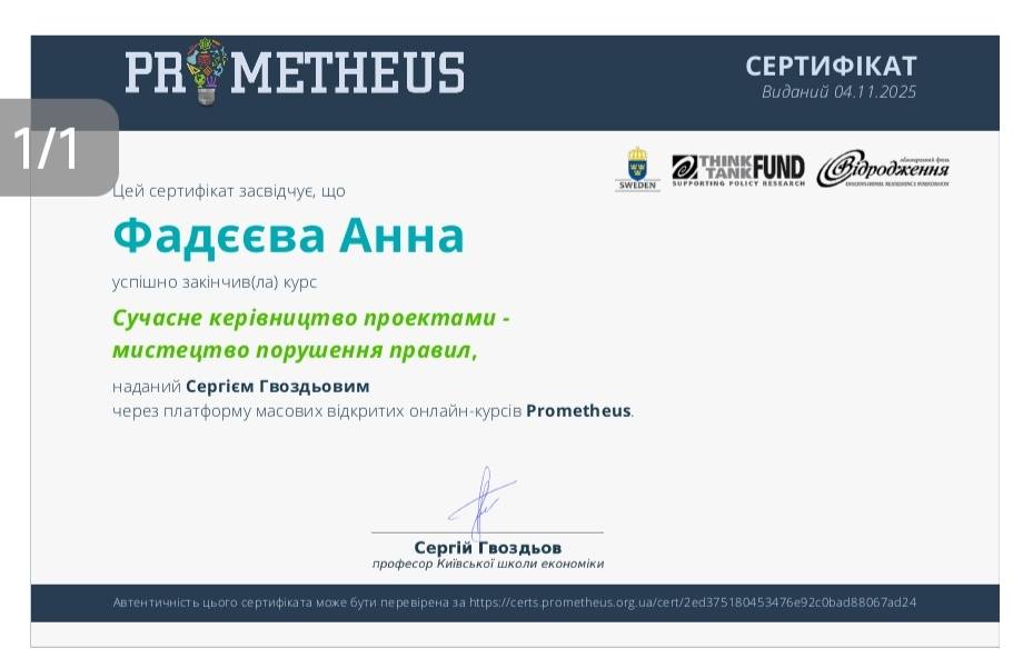 Цього тижня здобувачі вищої освіти 4 курсу денної форми навчання кафедри економіки та менеджменту філії успішно завершили додаткові курси на платформі Prometheus і отримали відповідні сертифікати.