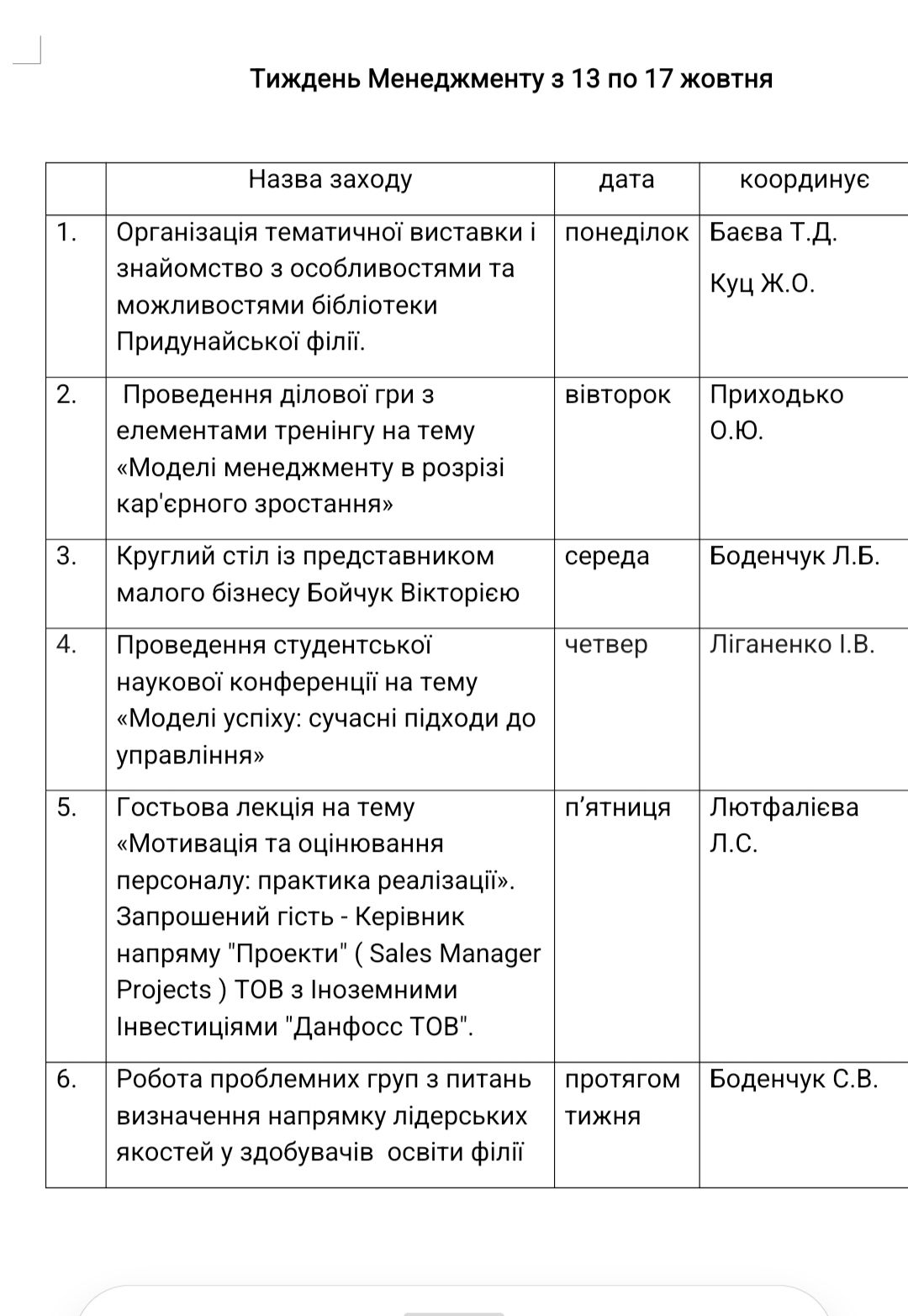 У Придунайській філії ПрАТ "ВНЗ "МАУП" 13 жовтня 2025 року починається "Тиждень менеджменту". Запрошуємо всіх здобувачив вищої освіти до активної участі у цьому заході.