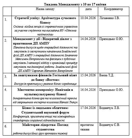У Придунайській філії ПрАТ "ВНЗ "МАУП" 10 квітня 2026 року стартує "Тиждень менеджменту".