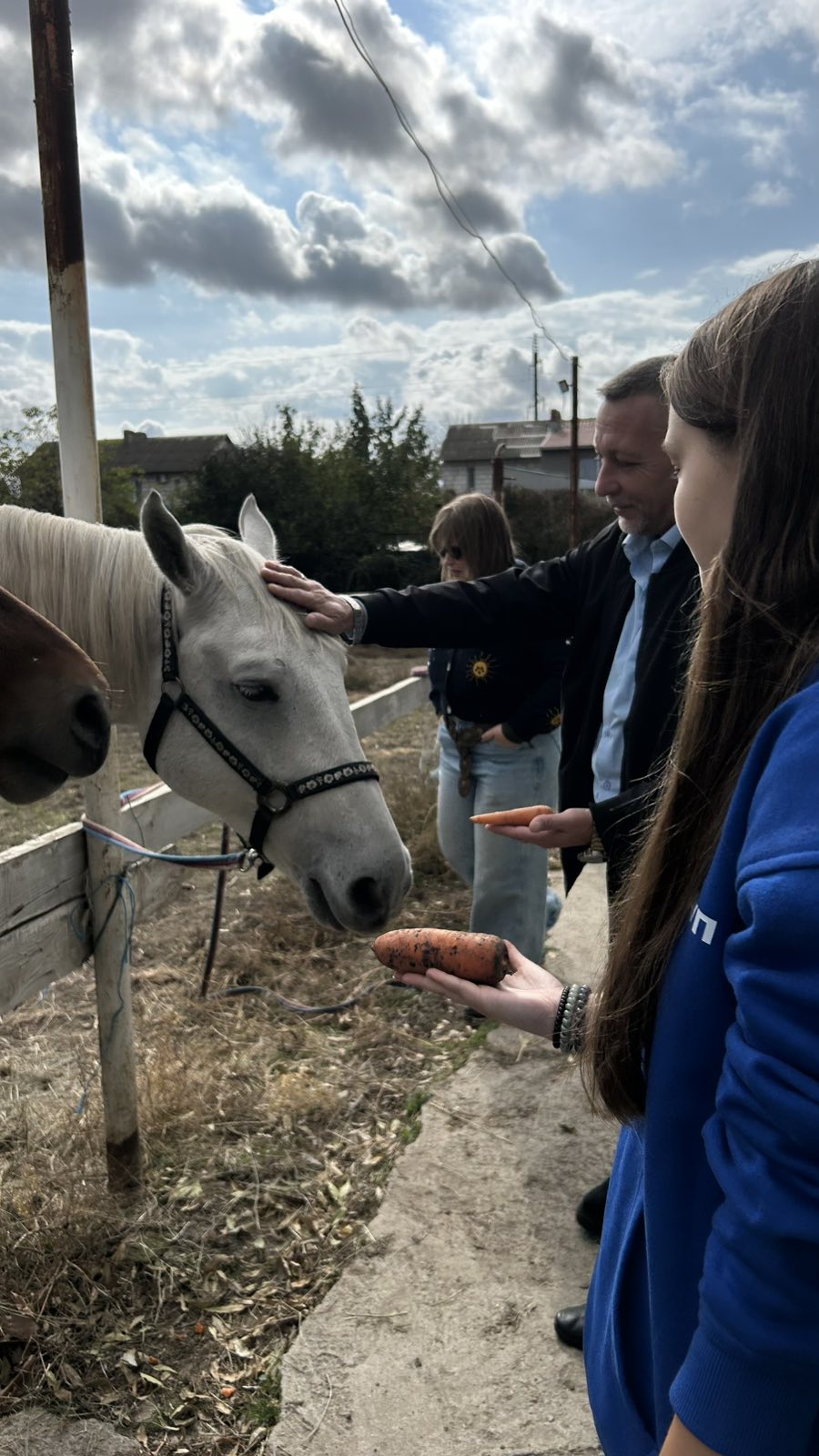 У межах волонтерської ініціативи студенти не лише долучилися до вправ з іпотерапії, а й підгодовували коней після завершення заняття, висловлюючи вдячність тваринам за спокій і підтримку.