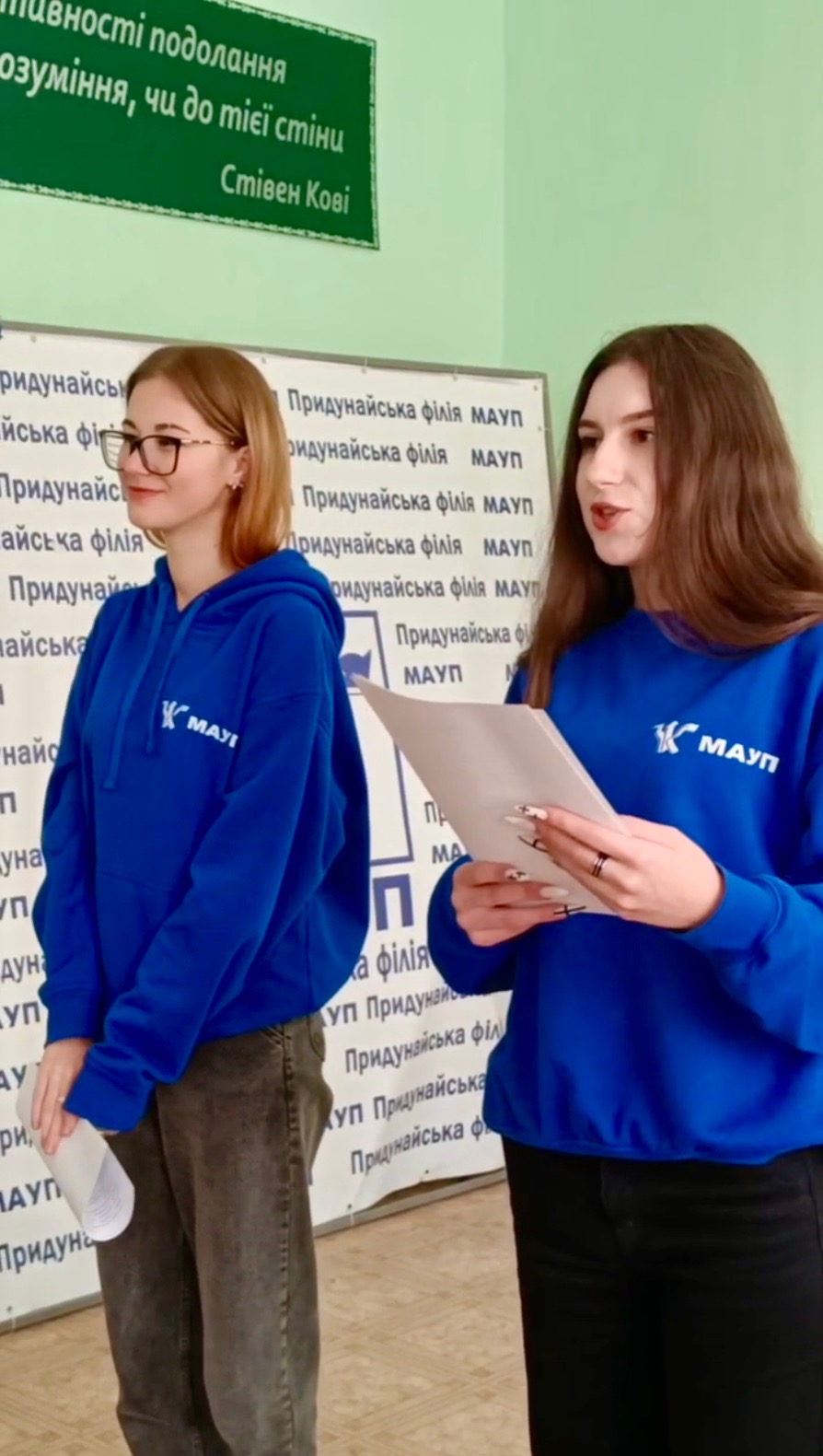 До Міжнародного Дня студентів здобувачки вищої освіти ІІ курсу Придунайської філії Пр АТ «ВНЗ «МАУП» Влада Хмельниченко та Олександра Маленко (під керівництвом проф. Гуменникової Т.Р.) підготували та провели тренінг для студентів-першокурсників «Ми студенти МАУП!», який був спрямований на створення нових творчих проєктів, креативність мислення та розвиток лідерських якостей першокурсників. Різноманітні завдання створили атмосферу довіри, сприяли формуванню колективних ідей та можливостей, обговорення яких проходило під час чаювання, яке організувати студенти-волонтери Наталія Терзі та Владислав Гідіков.