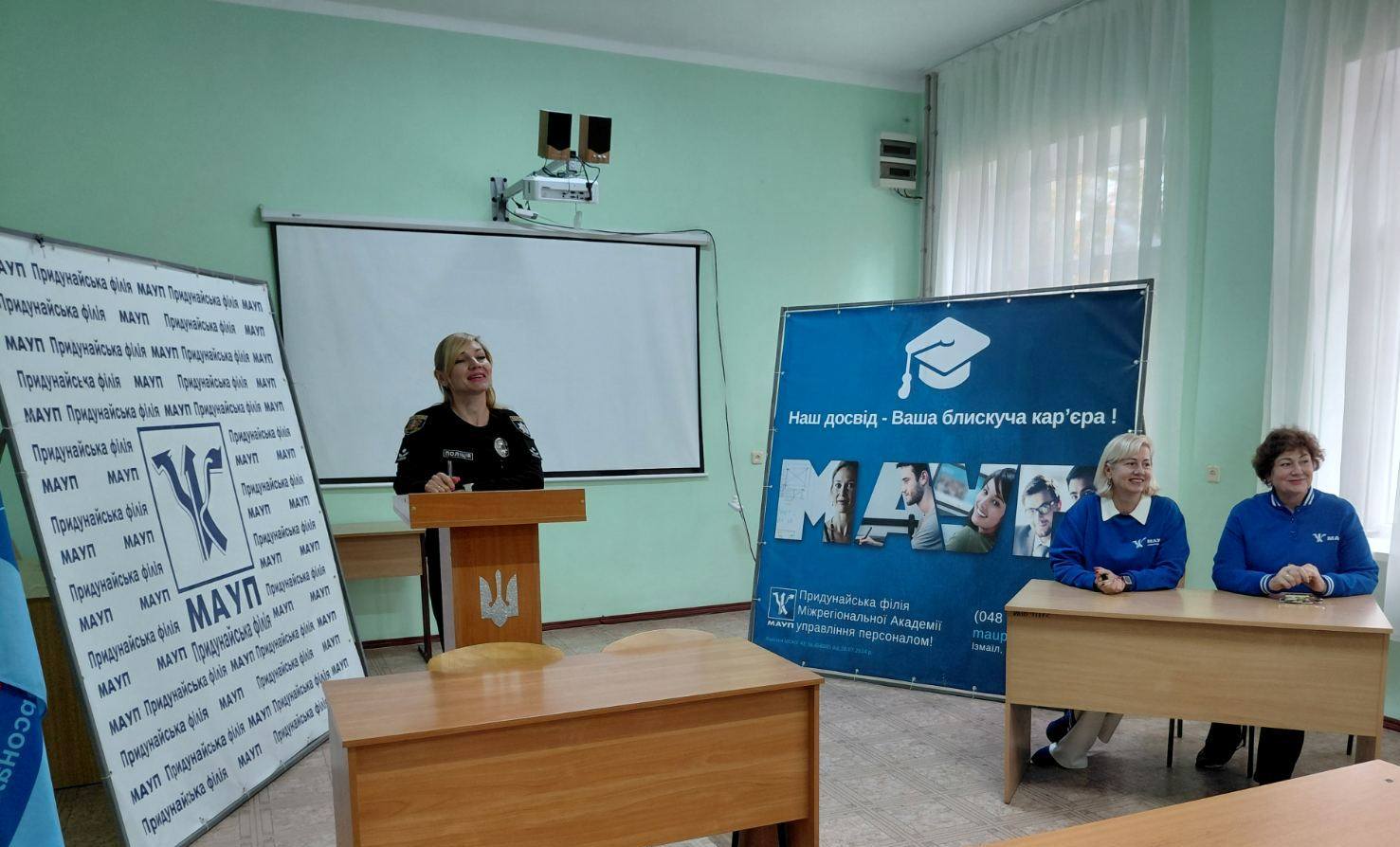 05 листопада 2025 року у Придунайській філії ПрАТ "ВНЗ "МАУП" відбулася зустріч зі старшим інспектором сектору кадрового забезпечення Ізмаїльського районного відділу поліції ГУНП в Одеській області, майором поліції Артеменко-Голод Тетяною Яковлівною, яка розповіла здобувачам вищої освіти про особливості вступу до навчальних закладів системи МВС, умови відбору, переваги навчання та можливості майбутнього працевлаштування в поліції.